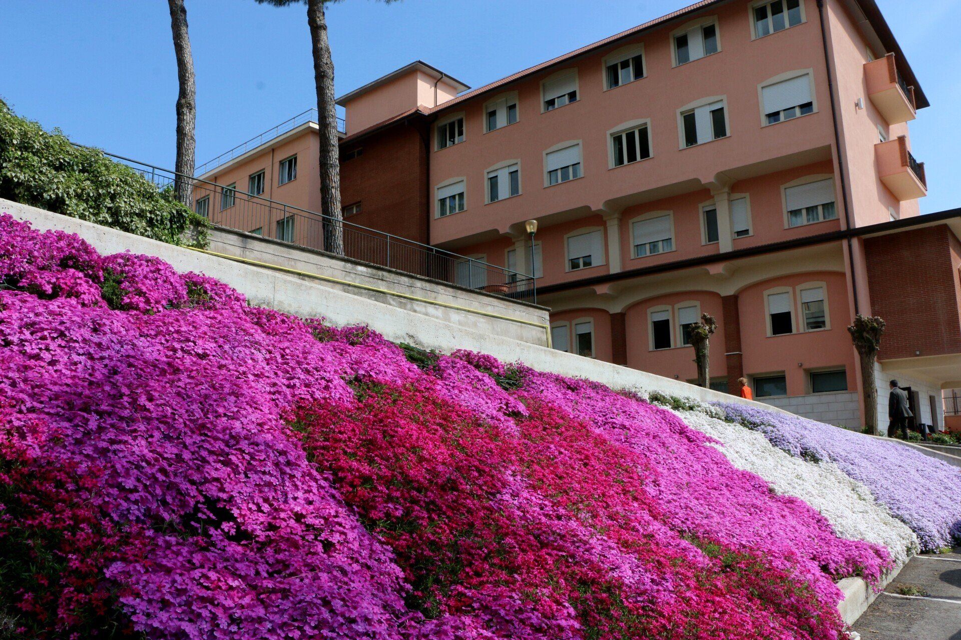 Situata all’interno di un vasto parco, tra le colline di ulivi secolari con vista panoramica sull’Abbazia di Montecassino, la struttura è dotata di ampi spazi per la vita comune degli ospiti: giardini, laboratori, sale ricreative, palestre attrezzate, ambulatori per la fisiochinesiterapia, cappella per le funzioni religiose e un accogliente bar.
